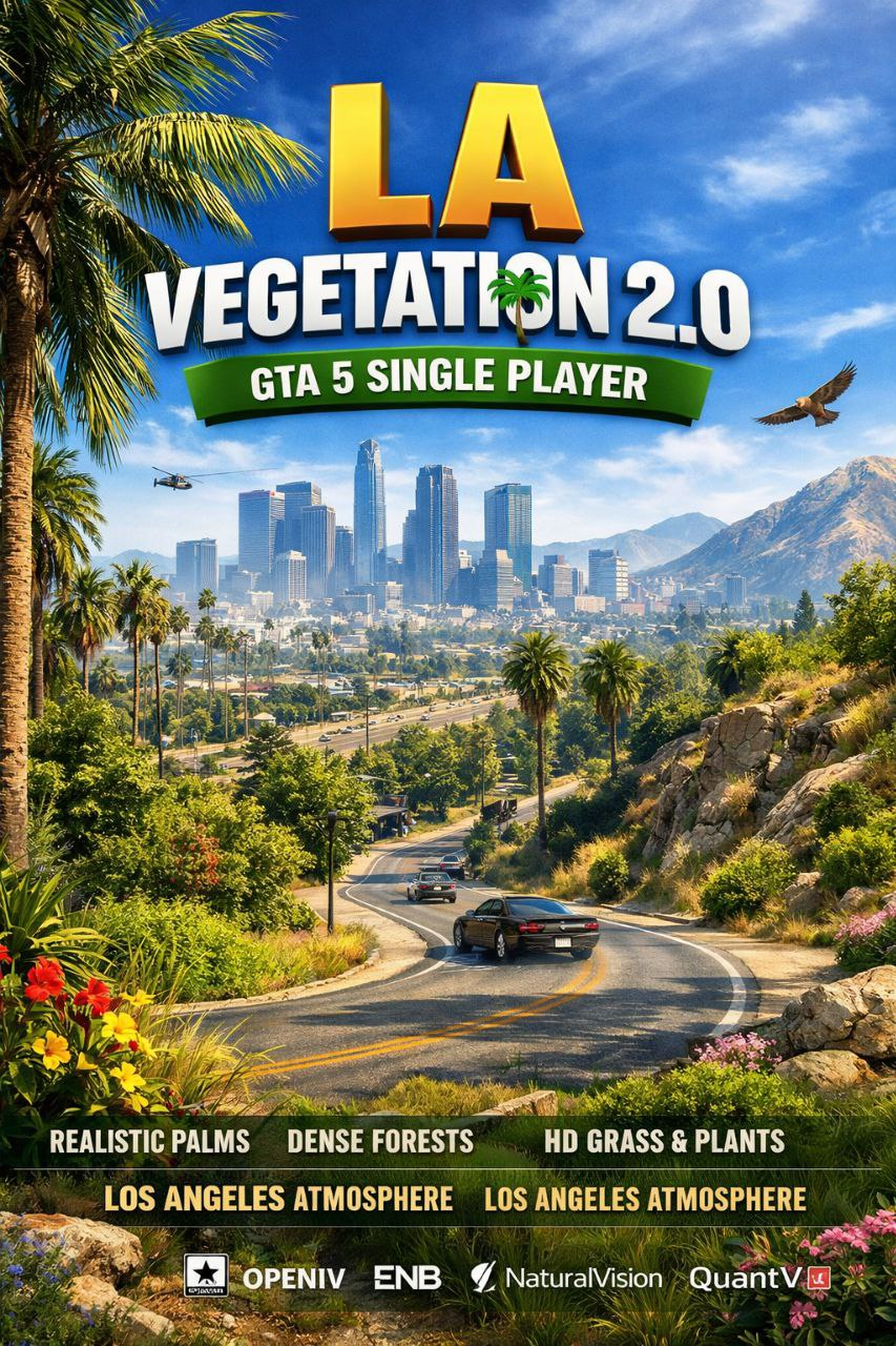 🌴 LA Vegetation GTA 5 Enhanced — Реалистичная растительность нового поколения